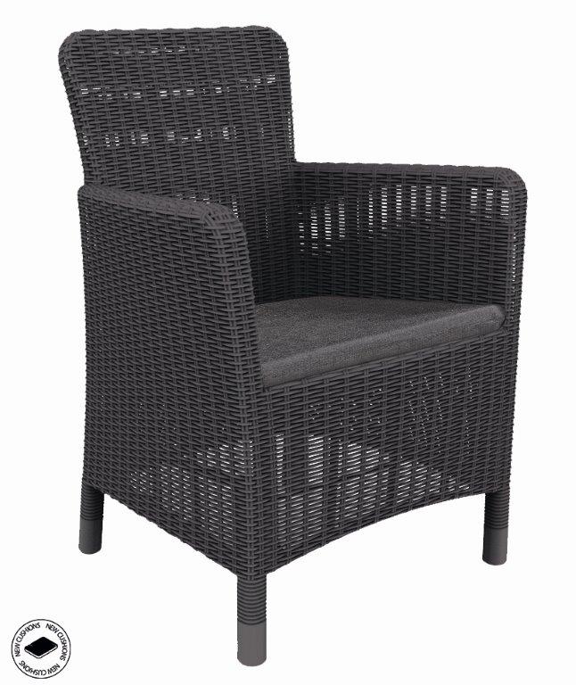 Design umělého pleteného ratanu v grafitové barvě zaujme na první pohled a křeslo díky stylovému a modernímu vzhledu zapadne dokonale do každého interiéru i venkovních prostor.